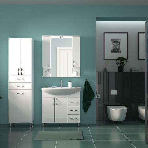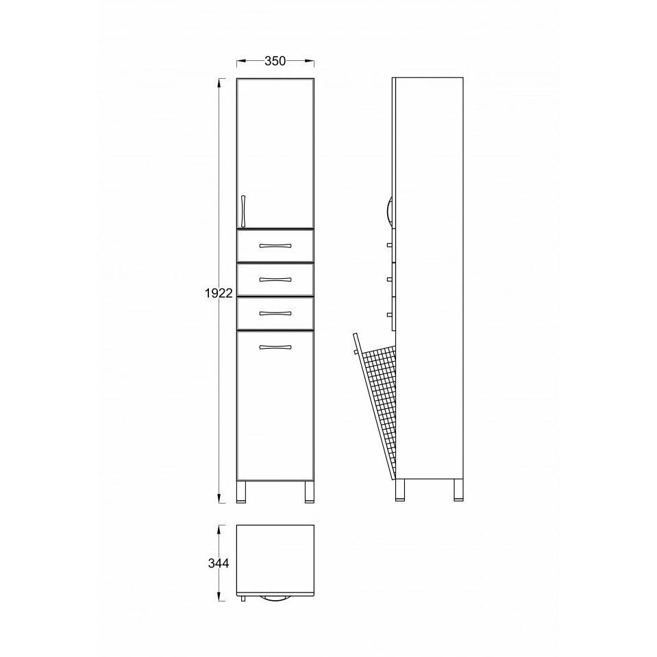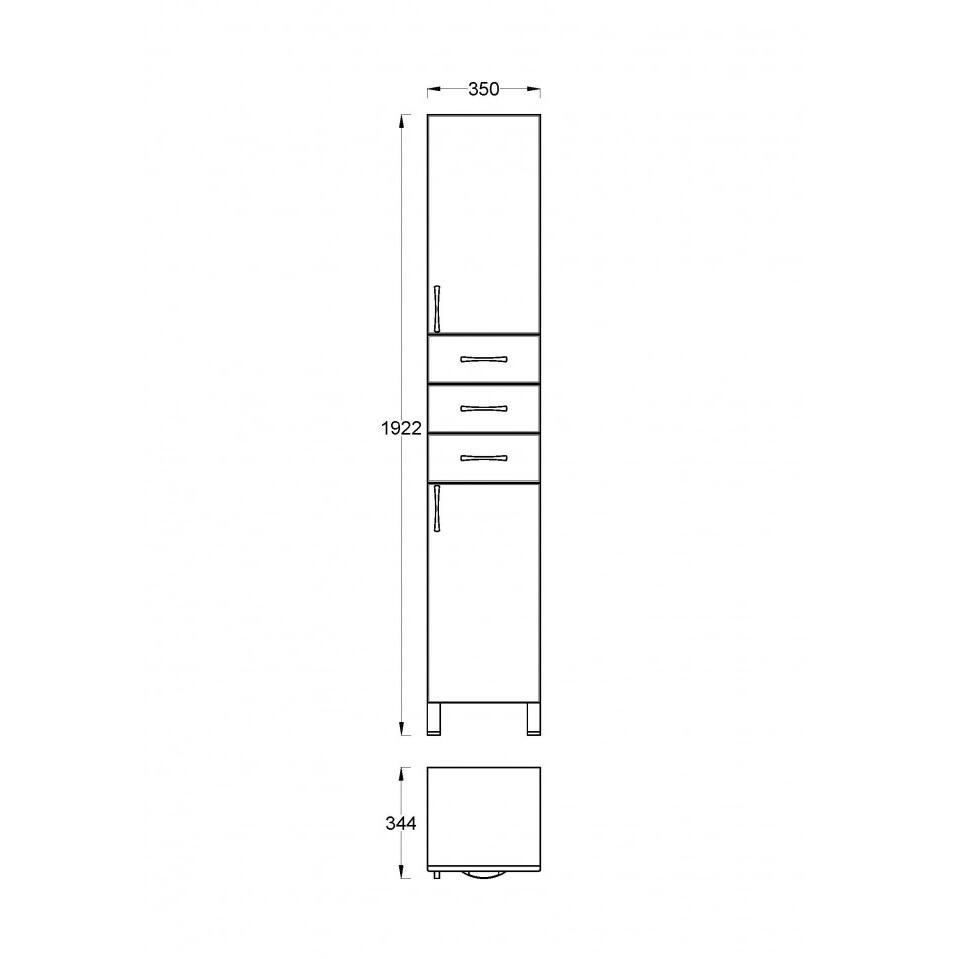 Vertikala SIRIS 0956 Vertikala Siris VS 0956 je izuzetno funkcionalan i estetski privlačan dodatak za svako kupatilo. Sa svojim modernim dizajnom i praktičnim policama, omogućava vam organizaciju svih kupatilskih potrepština na uredan i elegantan način. Izrađena od kvalitetnih materijala, ova vertikala je otporna na vlagu i pogodna za dugotrajnu upotrebu. Uz minimalistički izgled, savršeno se uklapa u svaki enterijer, čineći vaše kupatilo sofisticiranim i urednim. Način otvaranja: vrata i fioka Dimenzije: 350 x 1840 x 344 mm Ručke su bele od kvalitetne plastike, dok su nogare metalne Korpus izrađen od farbane bele iverice visokog sjaja, a front od farbanog medijapana visokog sjaja