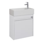 Ormarić LINEART MOON MON0500W.BS Ormarić Lineart Moon 500 White sa lavaboom nudi modernu estetiku i funkcionalnost u kompaktnom pakovanju. Beli finiš i minimalistički dizajn čine ga idealnim za manja kupatila, gde pruža dovoljno prostora za odlaganje i organizaciju. Lavabo je integrisan u dizajn, čime se maksimalno štedi prostor, a ormarić je izrađen od visokokvalitetnih materijala otpornih na vlagu. Mat površina Keramički lavabo Način otvaranja: Vrata, desno Soft Close mehanizam Dimenzije: 505 x 265 x 620 mm Kvalitetna izrada od medijapana i iverice Odgovarajuće ogledalo možete pogledati OVDE