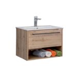 Kupatilski ormarić LINEART NOVA 800 NOV0800C.BS Ormarić Lineart Nova 800 Cadiz sa lavaboom predstavlja spoj luksuza i funkcionalnosti, dizajniran za moderne kupatilske prostore. Sa svojim sofisticiranim Cadiz finišom, ovaj ormarić unosi elegantan stil u vaš dom, pružajući dovoljno prostora za odlaganje toaletnih potrepština. Izrađen je od visokokvalitetnih materijala koji garantuju otpornost na vlagu i dugotrajnost. Integrisani lavabo omogućava jednostavno korišćenje, a minimalističke linije ormarića savršeno se uklapaju u svaki savremeni enterijer. Ormarić Lineart Nova 800 Cadiz je idealan izbor za sve koji traže balans između estetike i funkcionalnosti. Mat površina Keramički lavabo Način otvaranja: Soft close fioka Dimenzije VxDx Scaron;: 510x 800x 400mm Kvalitetna izrada od medijapana Odgovarajuće ogledalo možete pogledati OVDE