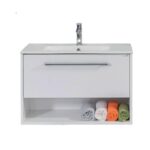Kupatilski ormarić LINEART NOVA 800 NOV0800W.BS Ormarić Lineart Nova 800 White sa lavaboom je stvoren za sve one koji žele prostran i elegantan kupatilski nameštaj koji odiše modernim stilom. Sa svojim belim finišom, ovaj ormarić unosi svežinu i prostranost u vaš kupatilski prostor. Napravljen od visokokvalitetnih materijala, ormarić je otporan na vlagu i izdržljiv, što ga čini idealnim za dugotrajnu upotrebu. Njegov dizajn nudi dovoljno prostora za odlaganje svih neophodnih toaletnih potrepština, dok integrisani lavabo olakšava svakodnevne rutine. Ormarić Lineart Nova 800 White je odličan izbor za modernizaciju svakog kupatila, pružajući savršen spoj stila i funkcionalnosti. Mat površina Keramički lavabo Način otvaranja: Soft close fioka Dimenzije VxDx Scaron;: 510x 800x 400mm Kvalitetna izrada od medijapana Odgovarajuće ogledalo možete pogledati OVDE